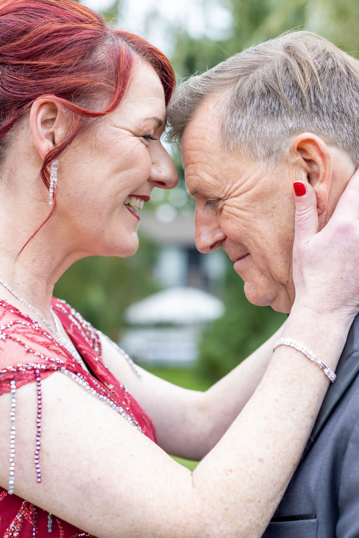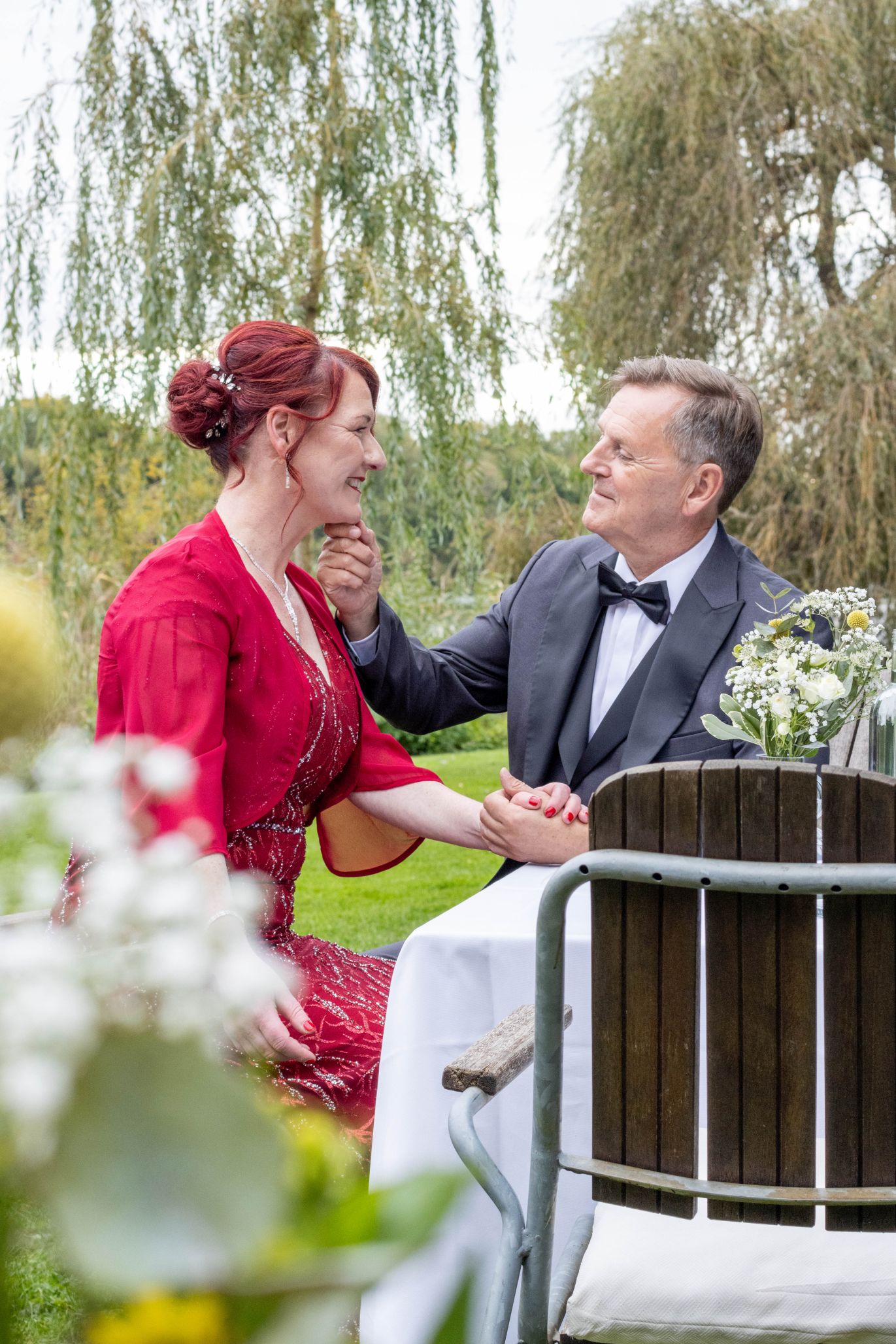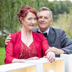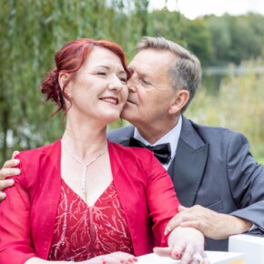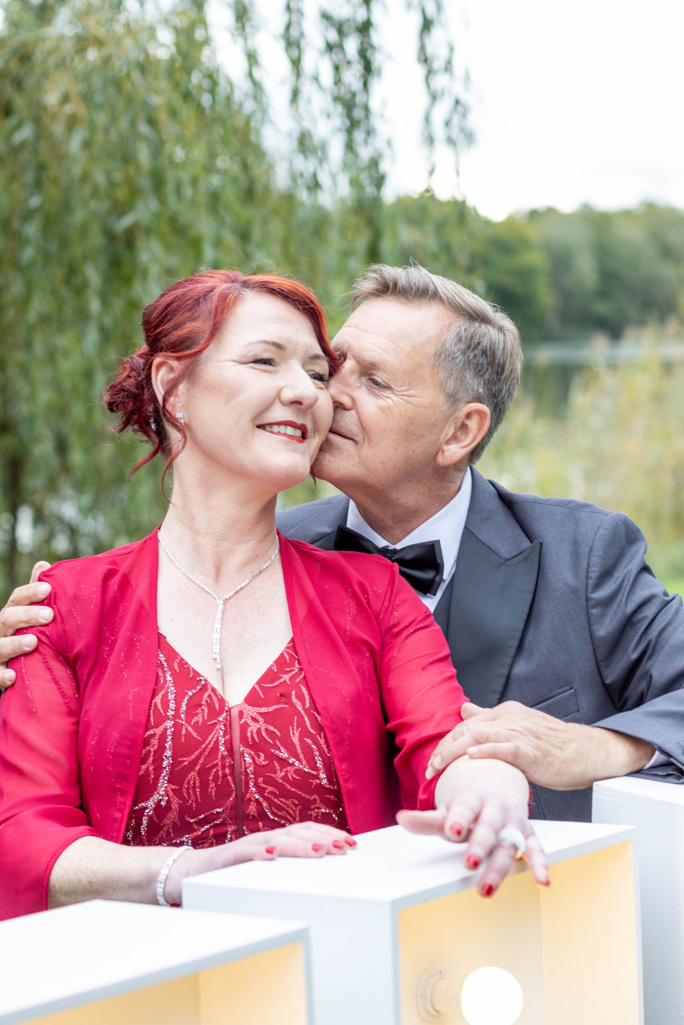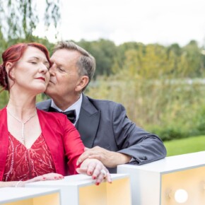 Die Silberhochzeit strahlte in Eleganz, und das rote Kleid setzte einen lebhaften Farbtupfer in dieser unvergesslichen Feier. Zwei Jahrzehnte Liebe, eingefangen in Bildern, die Erinnerungen zum Leuchten bringen.