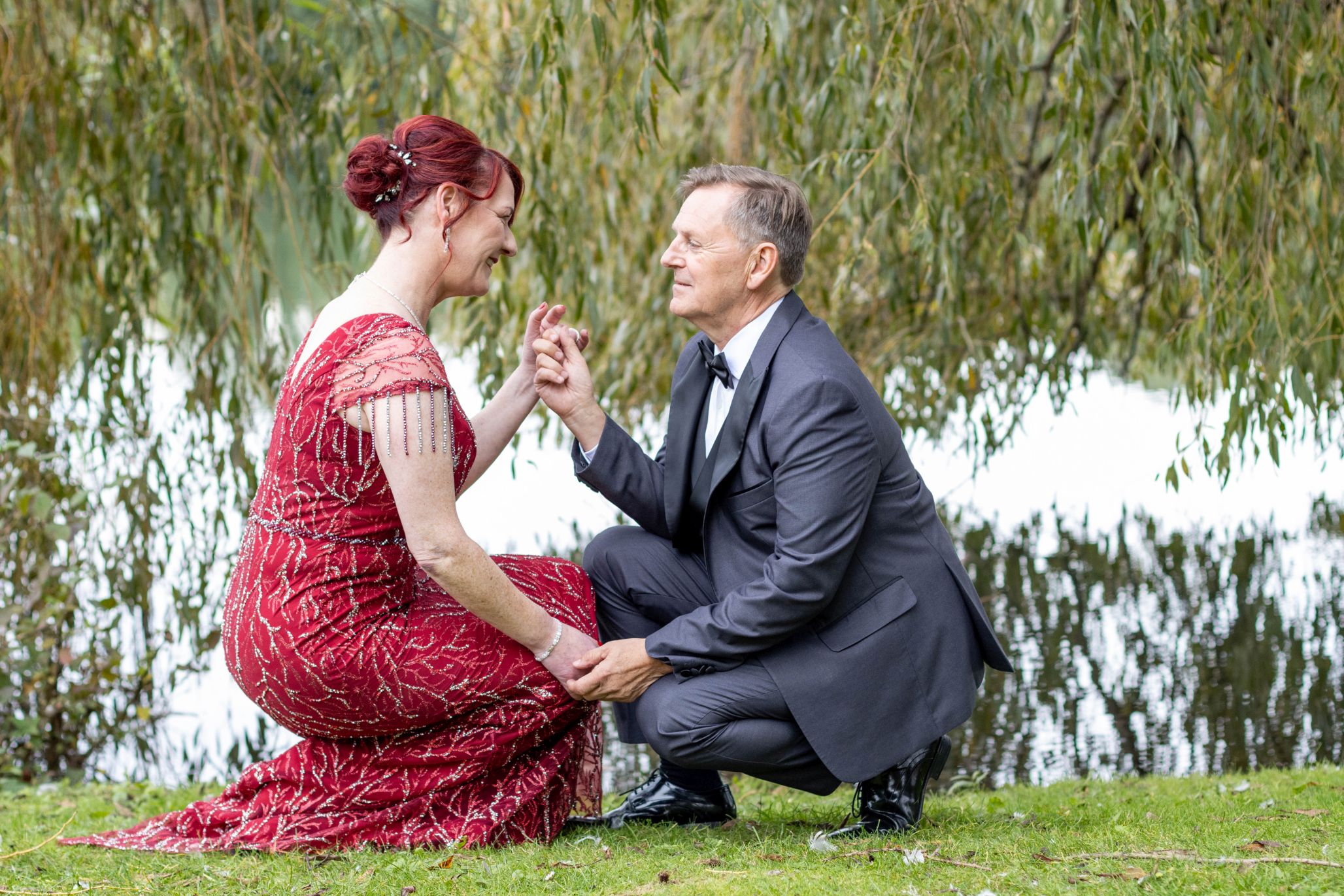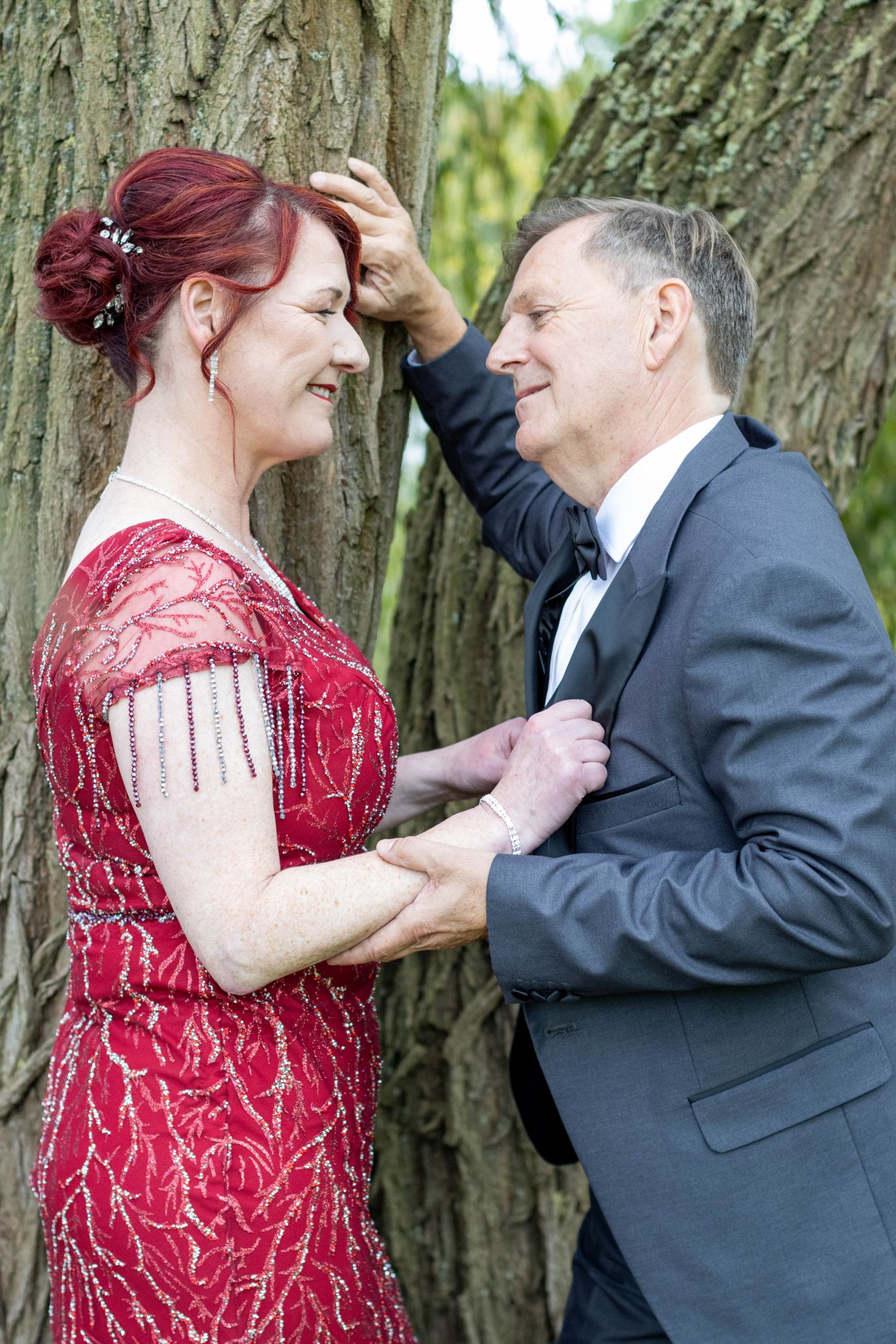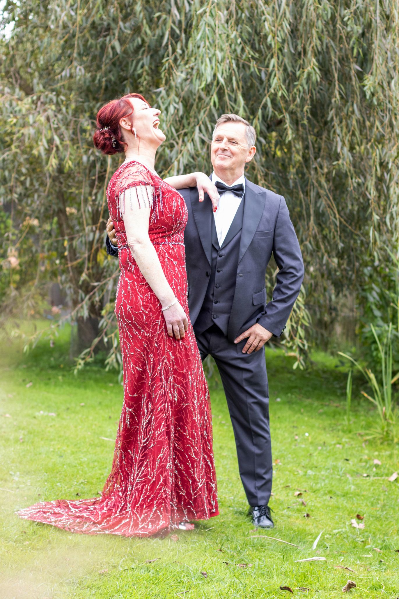Die Silberhochzeit strahlte in Eleganz, und das rote Kleid setzte einen lebhaften Farbtupfer in dieser unvergesslichen Feier. Zwei Jahrzehnte Liebe, eingefangen in Bildern, die Erinnerungen zum Leuchten bringen.