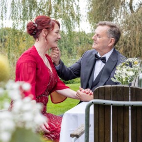 Licht, Liebe und Lachen – in einer silbernen Momentaufnahme vereint. Am Blauen See wurden Träume greifbar, während ein Karikaturist den Gästen ein Lächeln zauberte und dem Tag eine spielerische Note verlieh.